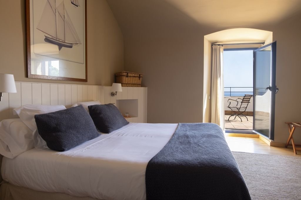 L’hotel combina una arquitectura tradicional impecablement restaurada amb un estil mediterrani sobri i acollidor. Les habitacions són lluminoses, amb materials naturals, colors suaus i un ambient que convida al descans. Moltes d’elles ofereixen finestres obertes sobre les platges de Llafranc, Tamariu i Calella de Palafrugell, tres dels pobles mariners més estimats de la Costa Brava.